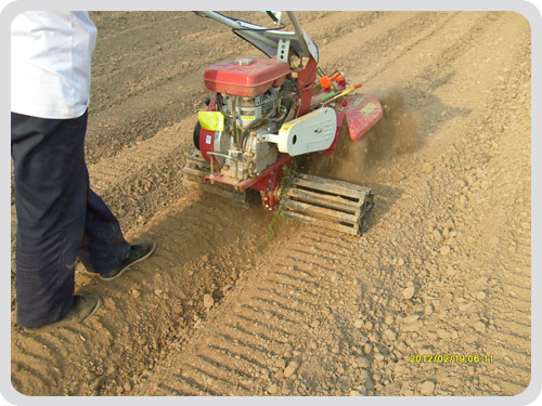 播種施肥簍:用于施肥,同時(shí)前面自動(dòng)開小溝,同時(shí)播種用,行距40mm,播深20-40mm